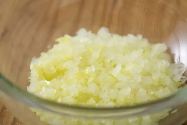 ・玉ネギは粗めのみじん切りにして、耐熱容器に入れ、サラダ油大さじ1をかけてから、ラップをして電子レンジ600Wで4~5分加熱する。