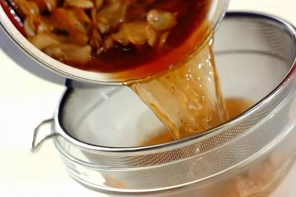 3、(2)をザルでこし、煮沸消毒をした瓶に入れて保存する。<保存期間>冷蔵庫で2週間ほど保存可能ですが、保存状況にもよるので、様子を見ながらお早目に使用して下さい。