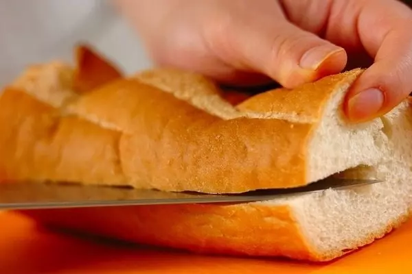 4、バゲットは長さを半分に切り、厚さ半分の切り込みを深く入れ、切り込みにバターとレバーペーストをぬる。