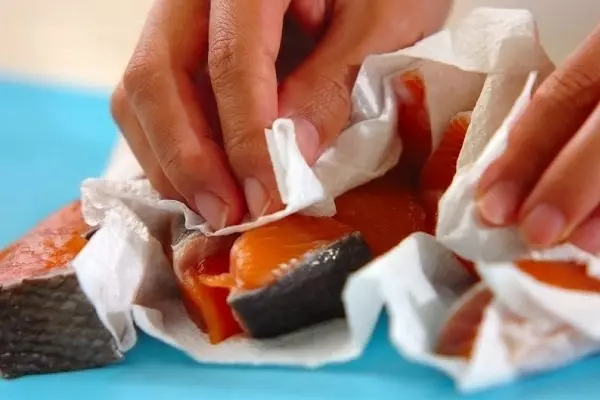 ・鮭はひとくち大に切り、塩を振る。