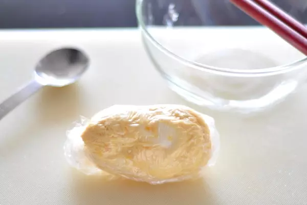 4、電子レンジから取り出し、素早くラップでクルクルと包み(熱いので注意)、数分置いておく。