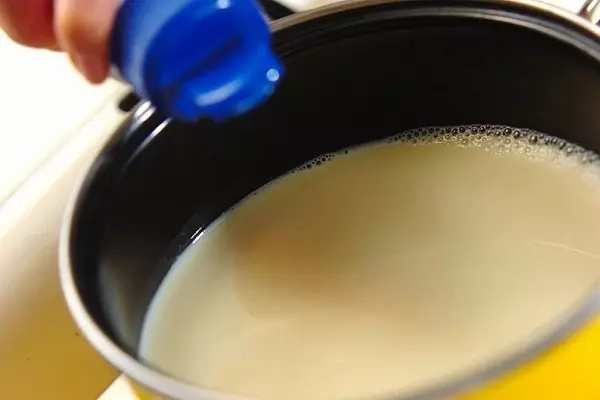 1、鍋に豆乳、顆粒中華スープの素を入れ、沸騰させないように弱火で温め、塩コショウで味を調える。