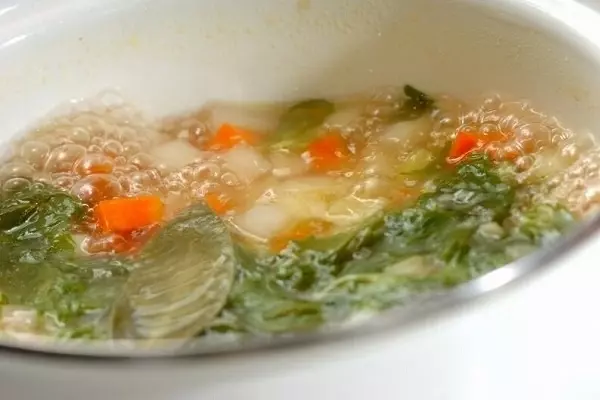 2、<スープ>の材料を加え、蓋をして10分程煮て器によそう。