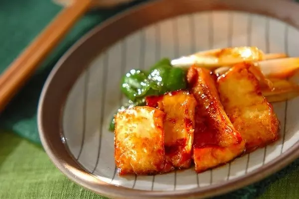 お肉のように厚揚げを甘辛ダレに漬けこんで焼く、ボリューム感のあるヘルシーな一品。