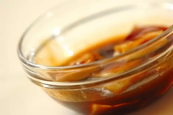 2、<漬けダレ>の材料をボウルに入れ、よく混ぜ合わせる。そこに、切った厚揚げを10分ほど漬ける。