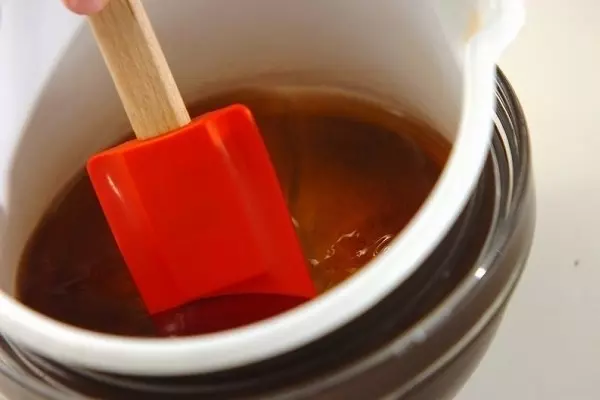 1、ウーロン茶を鍋に入れて中火にかけ、湯気があがれば火を止めて、ふやかしたゼラチンを加えて混ぜ合わせ、余熱で溶かす。