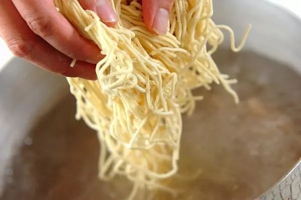 2、中華麺は袋の表示通りにゆで、ザルに上げて流水で洗い、水気をよくきって器に盛る。