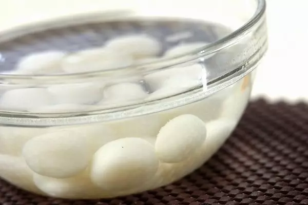 3、たっぷりの熱湯に入れ、浮き上がってきたら1分位ゆでて冷水に取る。
