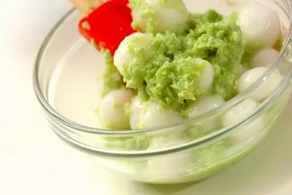 4、<ずんだあん>と<白玉団子>を和えて、器に盛る。