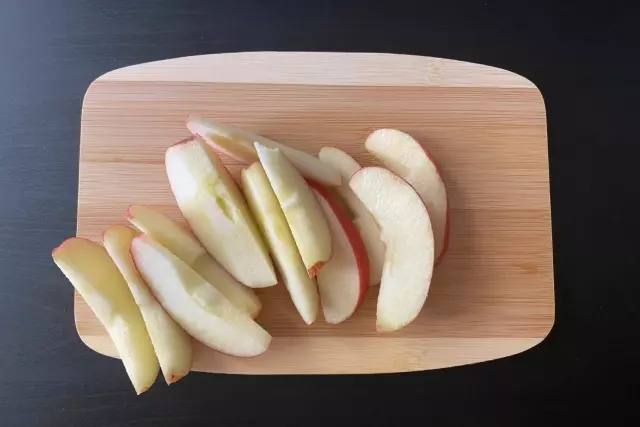 しょっぱいのはいやだけど、ハチミツが家にない! という方もご安心。砂糖でもできます。2カップ(400cc)の水に砂糖を大さじ2溶かして、5〜10分浸します。ハチミツ水や砂糖水はベタベタしますよね。そのベタベタでりんごの表面が覆われることで、変色を防いでくれます。