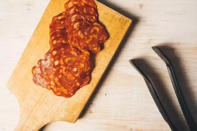 ソーセージと同じようにひき肉を腸詰したあと、ペパロニは加熱せずに60日~90日という長い時間をかけて乾燥させ、熟成してつくられています。