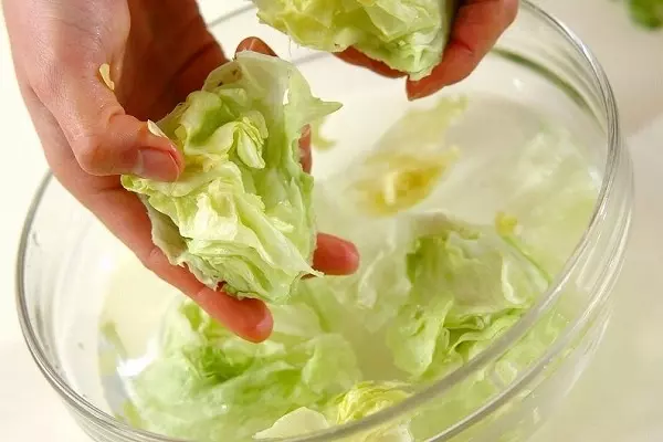 ・レタスは手で大きめにちぎり、水に放ってパリッとさせる。