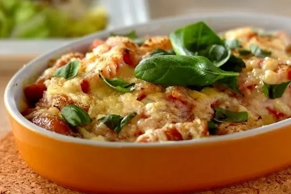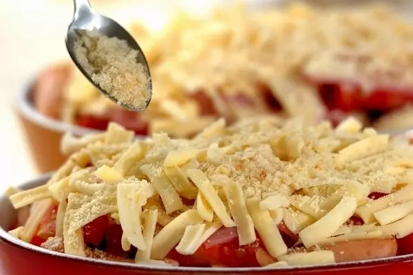 火を使わずレンジで簡単! 味付けはベーコンとソーセージでOK「ナスとトマトのグラタン風」