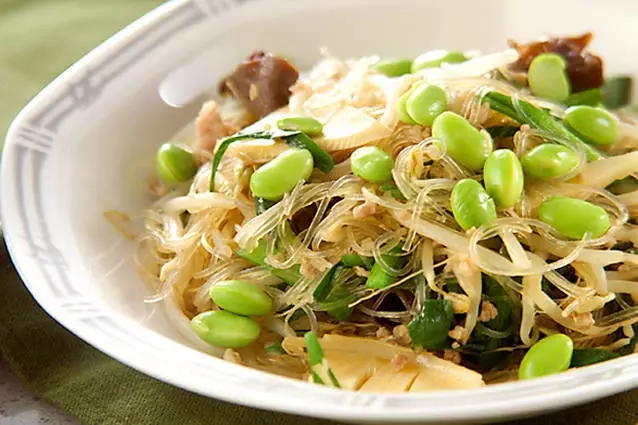 「春雨の中華炒め」は、枝豆のグリーンが映える定番の中華おかずです。