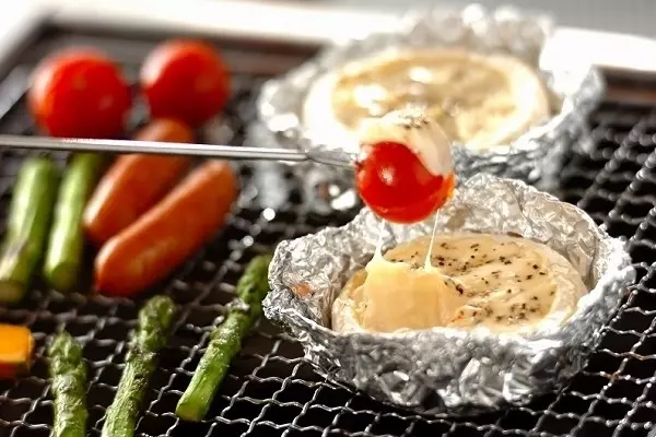 カマンベールの上の硬い部分を切り取って、ホイルに包んで焼くだけの簡単フォンデュ。中はトロトロで濃厚チーズがとっても美味しい!お好みの野菜やハム、ソーセージなどをホットプレートやグリルで焼きながら、チーズに絡めて食べてみてくださいね。ボリュームが欲しい時は小さくカットしたバケットもオススメです。