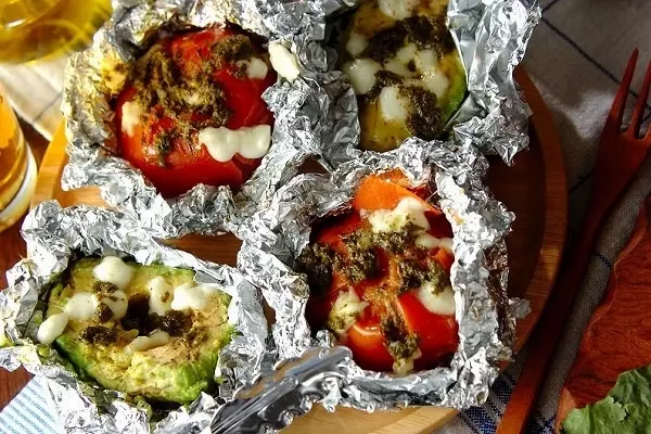 完熟トマトとアボカドをそれぞれホイルに包んで焼くだけの簡単レシピ。焼き上がりにモッツアレラチーズとバジルペーストを乗せたらおしゃれなアウトドアレシピの完成です。木製プレートに乗せて晩酌すれば、おうちでも十分にアウトドア気分を味わうことができますよね。ベランダに出て、終わりに近づいた夕焼けをみながらまったり大人時間を楽しんでくださいね。