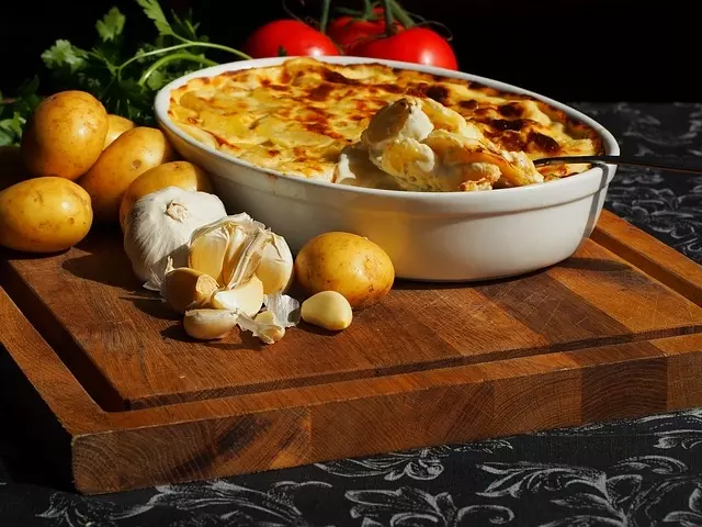 厚切りベーコンを使えば、食べ応えのあるグラタンができます。ベーコンのほかに、火を通したジャガイモやキノコを入れて、ホワイトソースとチーズを乗せたあとにオーブンで加熱すればできあがりです。