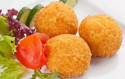 - 小麦粉、卵、パン粉の順にいれて170度の油でキツネ色になるまで揚げる
