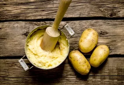 - じゃがいもが串でスっとささるまで茹でてつぶす