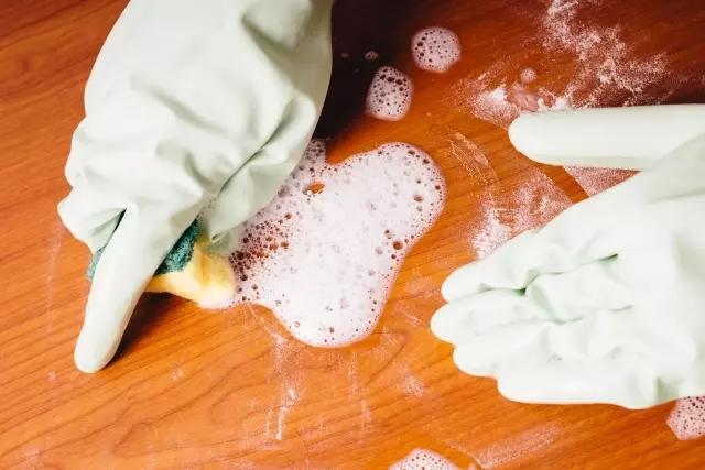 これで、中和が進み、汚れが浮きやすくなります。その後スポンジなどでこすりおとし、最後に水拭きをしてペーストを取り除いてくださいね。水拭きが足りないと白い跡が残ってしまうので、注意しましょう。
