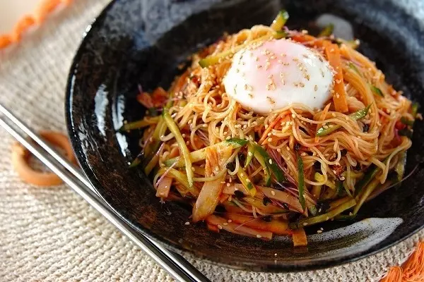 韓国料理の中でも人気が高い、冷たくて甘辛い麺のビビン麺。何度もリピしたいこのレシピのポイントは、なんといってもオリジナルの和えるタレ!