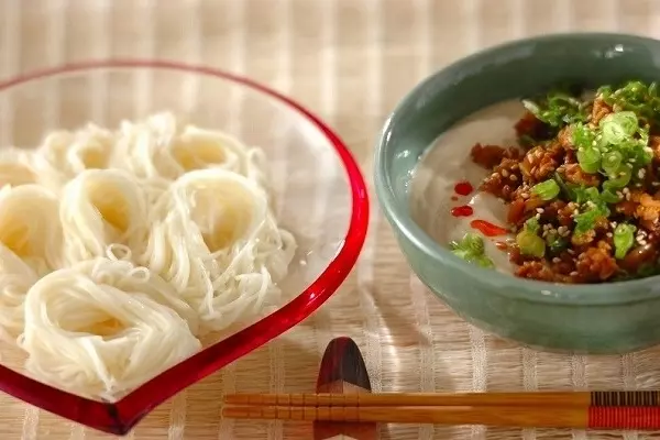 副菜にはビタミンCたっぷりの「甘夏サラダ」など、美肌を意識したサラダなどがオススメです。和風な素麺をちょっぴり洋風に仕上げたレシピです。・「冷たい担々麺風つけ麺」の献立