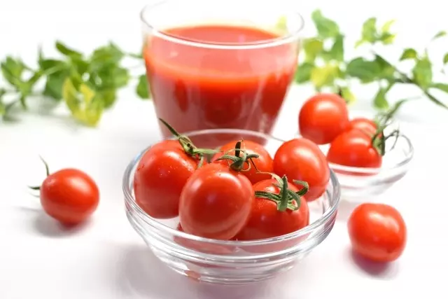 - 器に切り干し大根を入れ、トマトジュースを注ぎます