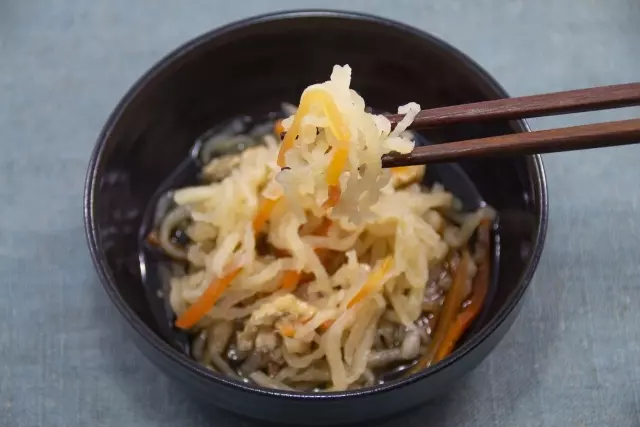 - 切り干し大根が戻ったら、水気をしぼり、料理に合った長さに切ります