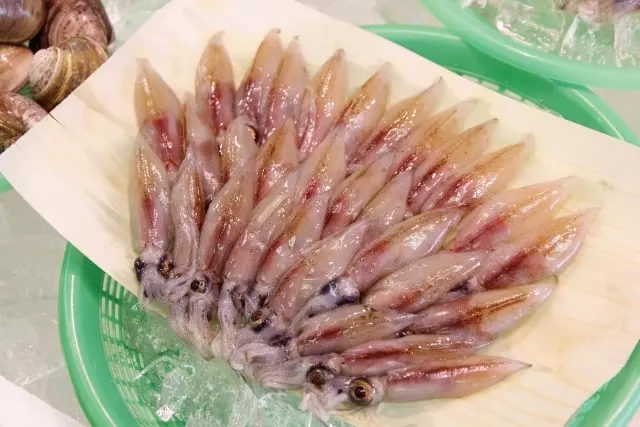ツツイカ目。体調7~8cmほどの小さなイカで、からだ全体に1000個もの発光器を持っています。富山では、春に産卵のために岸に近づいたホタルイカの大群が、そのまま浜辺に打ち寄せられる時に青白く光る光景がとても幻想的だと、季節のツアーが組まれるほど有名です。この光が昆虫の「蛍」に似ていることから「ホタルイカ」と呼ばれるようになりました。