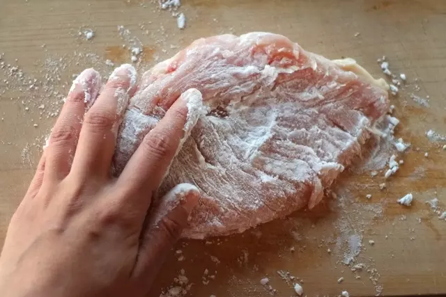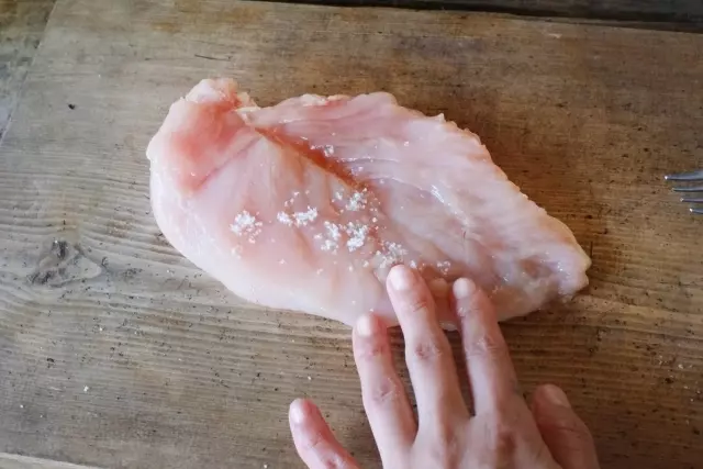 - 鶏胸肉に塩と砂糖をしっかりと揉み込みます。