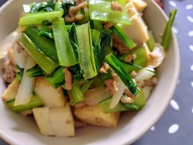 小松菜のβカロテンは油と一緒に食べると吸収がよくなるので、炒め物はとても相性がいい組み合わせです。栄養を効率よく摂るためにもおススメの食べ方ですよ。