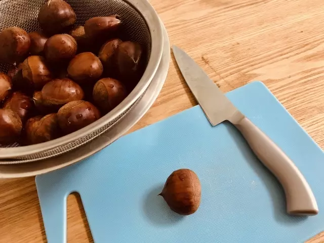 手順1:栗を沸騰した鍋に入れて3分程茹でて、冷ましてからフリーザーバッグに入れて空気をしっかり抜いてから冷凍する