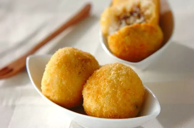 カレーコロッケのアレンジは、少し手間がかかりますが、お弁当のおかずにもなり、残りもので作ったとは思えないアレンジレシピですね。カレーを全解凍にせず半解凍にすることで、加熱したじゃがいもの熱とうまく混ざって中身を手で丸めやすくなります。