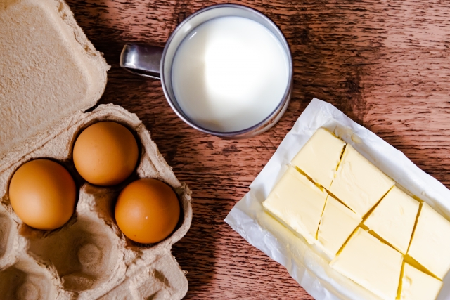 80%が脂肪分でできていますが、ビタミンやミネラルも含まれています。ビタミンAは牛乳の13倍もあり、無塩バターに関していえば、生の人参とほとんど変わりがないほどです。同じ油溶性ビタミンのビタミンEも含まれていますので、アンチエイジングへのはたらきも望めそうですね。ほかにも、カルシウムやビタミンDがバランスよく含まれているために、カルシウムの吸収の良さも期待できます。
