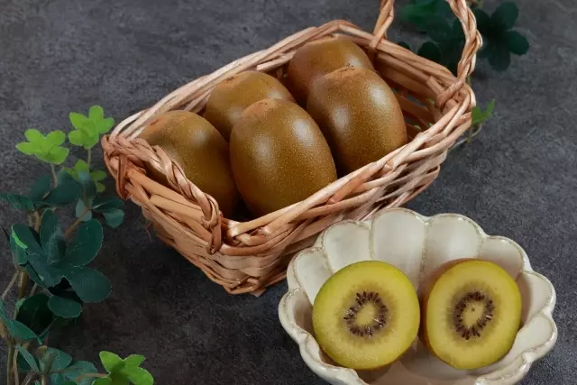 ゼスプリ社が、日本人の好みに合わせて20年という歳月をかけて開発した品種です。ゴールドキウイと呼ばれているもののほとんどが、この品種です。ヘイワードに比べると、ややスマートな俵型で産毛が薄く、表面はすべすべした手触りをしています。果肉は黄色でグリーンキウイよりも糖度が高く、成熟スピードが早いため、長期保存には向いていません。酸っぱいのが苦手という人におすすめの品種です。