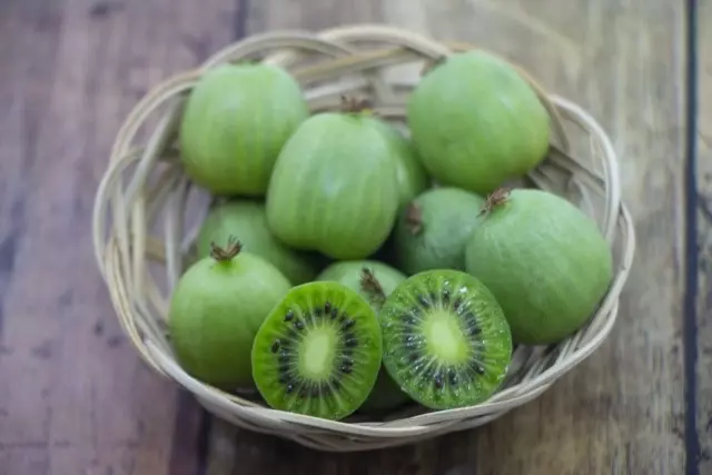 サルナシという木になる実で、「キウイベリー」や「ミニキウイ」とも呼ばれています。日本の市場に出回るものはアメリカやチリからの輸入物がほとんどで、国内では香川県で栽培されていますが、数が少なく希少品種で値段も高めです。全長が2cmから3cmと、見た目はとても小さいグリーンキウイです。皮が薄いためそのままぶどうのように食べられますが、皮には強い酸味があるため、苦手な人は皮を剥いでから食べる方が良いでしょう。