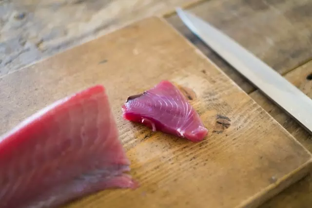 新鮮なかつおの身は、鮮やかな赤色をしています。鮮度が落ちてくると赤色がくすみ、黒っぽく変色していきます。これはかつおの色素に含まれる鉄分が酸化するためです。切り身は「赤がきれいなもの」を基準にするといいでしょう。