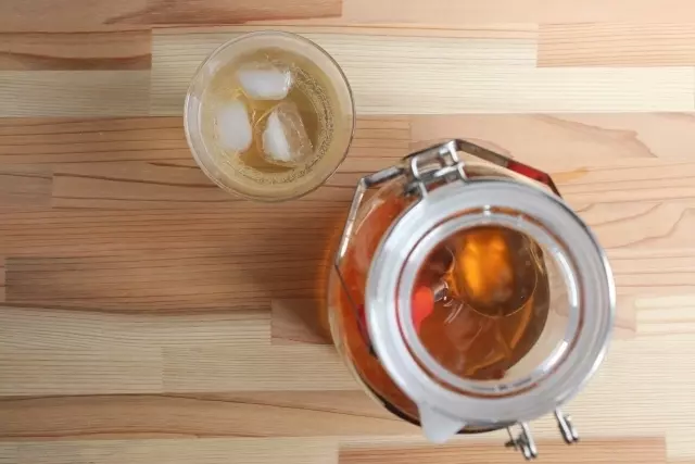 割り方の比率は、紅茶:梅酒=1:1。このときに使う紅茶は市販のアイスティーでも良いですが、温かい紅茶で割ることで、冬にぴったりの飲み物にもなります。