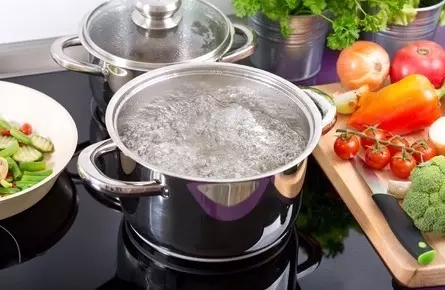 - 火を弱火にして、水、もしくは白ワインをいれて蓋をして蒸し焼きにする