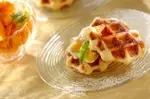 手順6:<ヨーグルトマンゴークリーム>の材料を混ぜ合わせ、ワッフル2枚で挟む