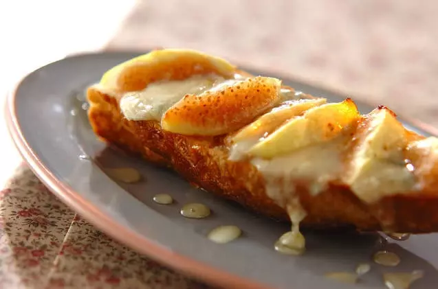 手順2:くし切りにしたイチジク、ゴルゴンゾーラチーズをのせてトースターで軽く焼き、ハチミツをたらす