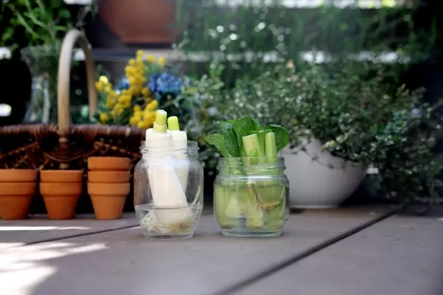水を使った栽培では、長ネギの根元とネギが倒れないほどの深さがある花瓶やグラスなどを用意します。容器に長ネギの根元をいれ、根が浸るくらい水を入れたら完了です。
