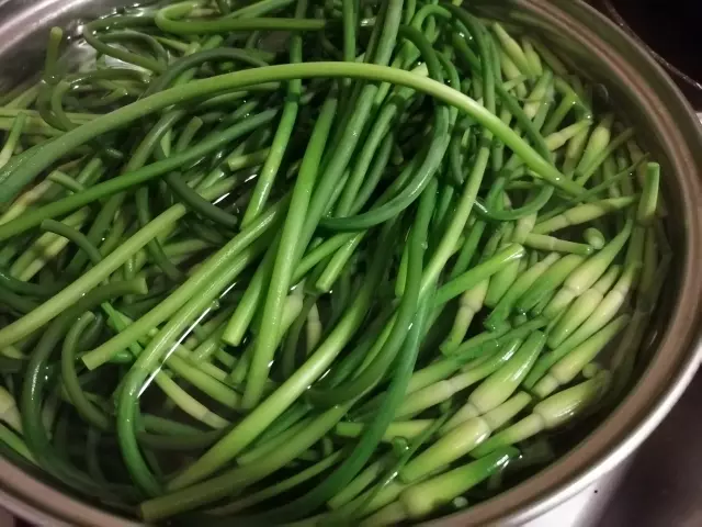 国産のにんにくの芽は、頭の部分に蕾が付いていることがあります。先ほど長いまま下茹ですると説明しましたが、それは茎の部分のことです。蕾部分は柔らかくて火が通りやすいため、茎とは別に切り分けて、茎よりも先に茹でてください。すぐに火が通るため、10~20秒前後茹でるだけで結構です。