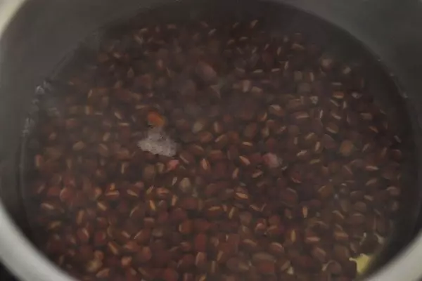 新豆でない豆や開封後時間が経った小豆を使う場合は、たっぷりの水に浸し、冷蔵庫で一日置いてください。