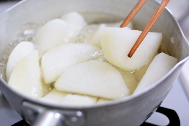 これは、青あざ症になった大根に限ったことではありません。大根に含まれているジアスターゼという酵素と米のとぎ汁に含まれているでんぷんの作用で、大根の苦味がやわらぎ甘味が引き立つとされています。