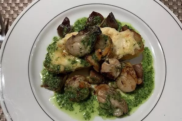 ブルギニヨンバターにはブルゴーニュのワインで。牡蠣は肉類と同じくグリコーゲンが豊富なので温かいお料理にした場合は爽やかな赤でも良いかと思います。
