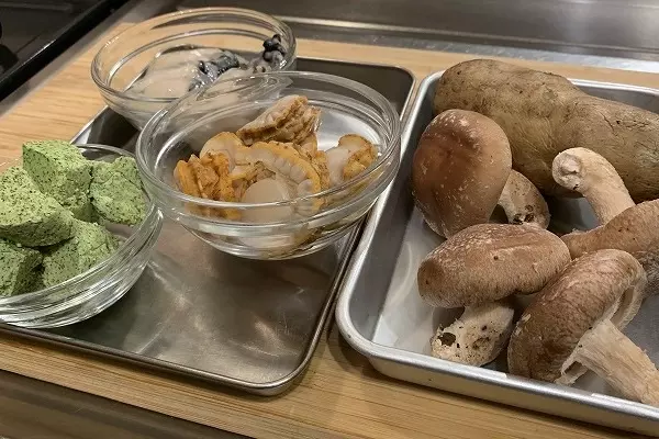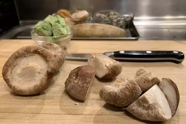 こちらも今が旬の「牡蠣」と「ホタテ」を。野菜は肉厚の「シイタケ」とバターとの相性が良い「ジャガイモ」を使います。