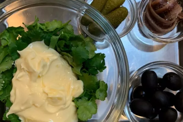 あえて大きさを変えることで、食材が余韻として口に残る順番で印象を伝えるテクニックもありますが、大きさが揃うことによって、食感にも喉越しにも統一感が出るので、全体としてまとまり完成度が上がります。つまり単体の素材ではなく「複合的な素材の融合」を感じることができるため「ソース」たる所以が醸し出されると思います。・「マヨネーズ」だけでは塩味が足りない