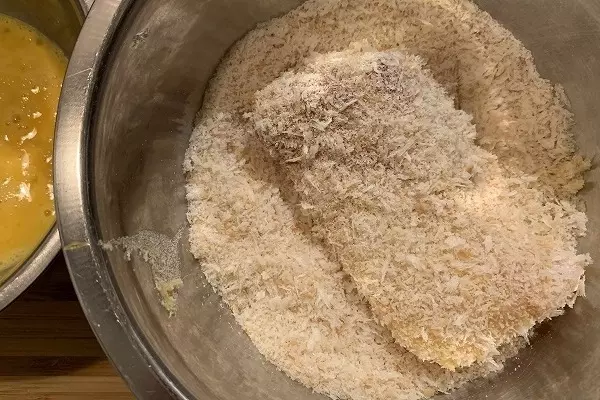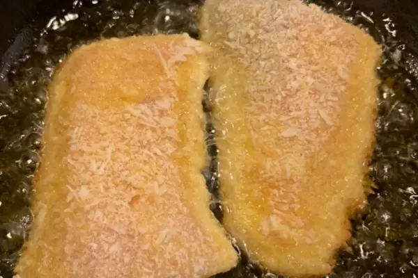 「アセゾネ」=assaisonnerは基本的に素材に塩胡椒をすることを言います。「パネ」=panerはパン粉をまぶすことを言います。小麦粉、溶き卵、パン粉をつけたものを「パネ・ア・ラングレーズ」と呼びます。アセゾネは「ホワイトペッパー」にて。