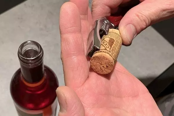 9、ナイフをゆっくり立てて行くと、簡単にコルクが上がってきます。一度にたくさん抜こうとせずに、2~3回にわけて引き上げると力加減も掴めてくるはずです。